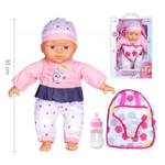 Este adorable bebote viene listo para acompañar a los más pequeños en sus juegos y cuidados. Vestido con un suave pijama de búho y acompañado por una mochilita a juego, es el compañero perfecto para estimular el juego de rol y la ternura en cada momento.