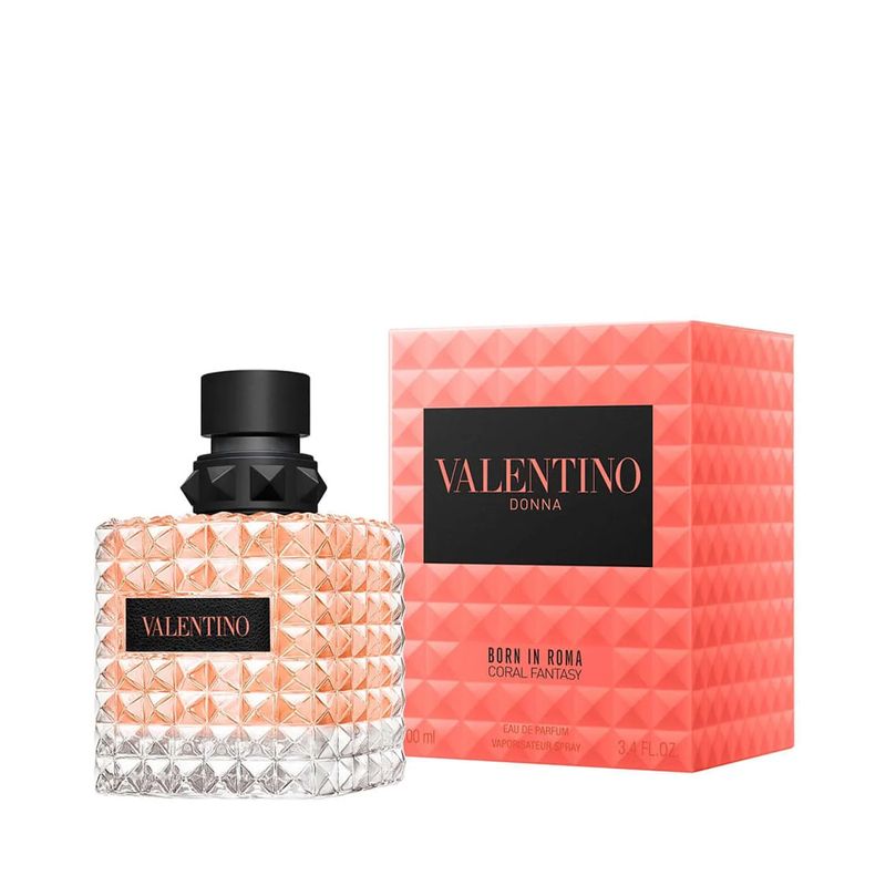 Viví el atardecer romano con Born in Roma Donna Coral Fantasy, un perfume floral-afrutado de Valentino. Inspirado en la grandeza delaciudad de Roma cuando la luz coral baña el horizonte y un momento mágico enciende los sentidos, su aroma revela una feminidad luminosa y contemporánea. La combinación de notas en esta fragancia ha sido diseñada para evocar una sensación de ligereza aromática, que incluye: Notas de jugosa naranja, que aportan frescura en su salida. Acordes de rosa en el corazón, que realzan la feminidad de la mezcla. El poder solar del jazmín grandiflorum en el fondo, que envuelve la fragancia en una calidez lujosa. Su presentación destaca con el emblemático frasco rockstud de Valentino.Con ángulos piramidales inspirados en la arquitectura romana, este diseño es una firma icónica de la Maison Valentino. El tono coral del frasco rinde homenaje a la luz del atardecer romano, complementando a la perfección la energía vibrante de esta fragancia.
