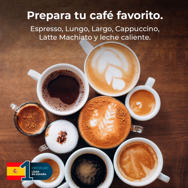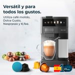 Gran VERSATILIDAD y VARIEDAD de CAFÉS: Compatible con café molido, Dolce Gusto, Nespresso y K-fee; prepara Espresso, Lungo, Largo, Cappuccino, Latte Macchiato y Leche Caliente.