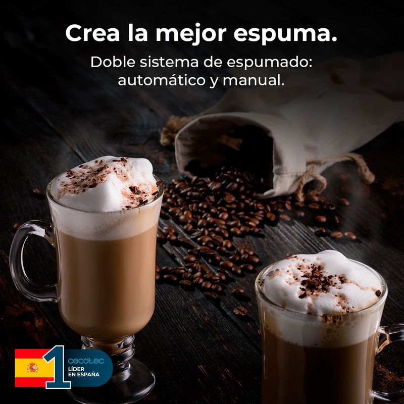 PANEL DE CONTROL INTUITIVO y Doble Sistema de Espumado: Pantalla y botones táctiles para fácil uso; opciones de espumado automáticas y manuales con boquilla desmontable.
