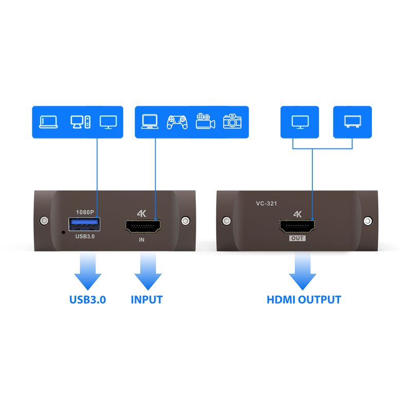 Con soporte de entrada hasta 4K a 60 Hz y salida en 4K a 30 Hz, la VC321 garantiza imágenes claras y fluidas. Su capacidad de captura a 1080p 60 fps en formato YUY2 ofrece resultados profesionales para transmisiones en vivo, videollamadas o grabación de gameplays.