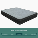 La capa superior Doble Euro Top aporta suavidad y confort, logrando ese balance perfecto entre soporte y sensación mullida. Además, el tratamiento antiácaros cuida tu salud y prolonga la vida útil del producto.