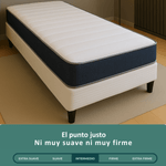 Este colchón ofrece un perfecto balance entre confort y durabilidad, con núcleo principal que soporta hasta 110 kg por plaza. Su funda en tejido de punto Stretch en la superficie y jackard en banda y parte inferior mantiene la temperatura ideal para un descanso fresco y placentero. Además, es antiácaros e hipoalergénico, cuidando tu salud y prolongando la vida útil del producto.