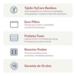 Este modelo cuenta con un sistema de resortes pocket que se adapta a la forma del cuerpo, brindando un soporte óptimo y reduciendo la transferencia de movimiento. Esto significa que si compartes la cama, no sentirás los movimientos de tu pareja, lo que contribuye a un sueño más profundo y reparador. Además, su capacidad de soportar hasta 120 kg asegura que es adecuado para diferentes tipos de usuarios.