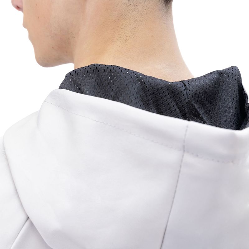 Capucha con insercion de malla en el interior y cordón regulable.