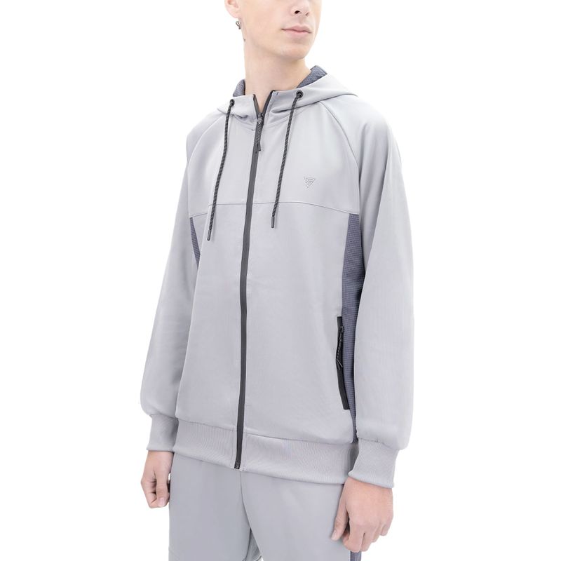 Material: 97% poliéster / 3% elastano. Campera: Cuello alto y cierre frontal. Puños y dobladillo acanalados. Bolsillos laterales con cierre. Capucha con insercion de malla en el interior y cordón regulable. Inserciones de malla en los laterales. Pantalón: Cintura elástica con cordón regulable. Bolsillos laterales con cierre. Puños elastizados y acanalados. Ajuste regular fit. Origen: China.