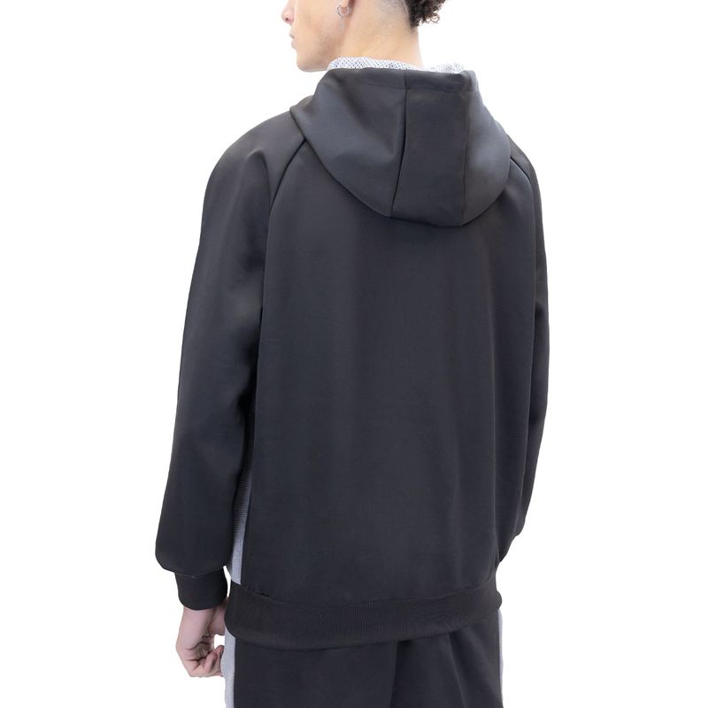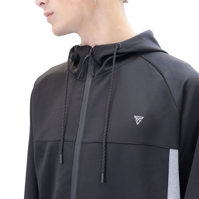 Material: 97% poliéster / 3% elastano. Campera: Cuello alto y cierre frontal. Puños y dobladillo acanalados. Bolsillos laterales con cierre. Capucha con insercion de malla en el interior y cordón regulable. Inserciones de malla en los laterales. Pantalón: Cintura elástica con cordón regulable. Bolsillos laterales con cierre. Puños elastizados y acanalados. Ajuste regular fit. Origen: China.