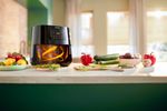 Diseñada para toda la familia, su capacidad XL (1,2 kg / 6,2 l) te permite preparar hasta 5 porciones en una sola tanda. Ideal para freír, hornear, grillar, asar, tostar e incluso recalentar tus platos favoritos.