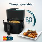 Con una capacidad de 6,5 litros, es perfecta para preparar platos para dos personas. Incluye 12 menús automáticos que ajustan tiempo y temperatura según el tipo de comida, además de termostato regulable (80 ºC a 200 ºC) y temporizador de hasta 60 minutos.