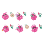 -1 x nuevo amigo, 1 x correa de bolso desmontable, 1 x cadena de cuentas, 1 x tarjeta de adopción, 1 x hoja de pegatinas exclusivas y 1 x dije especial.