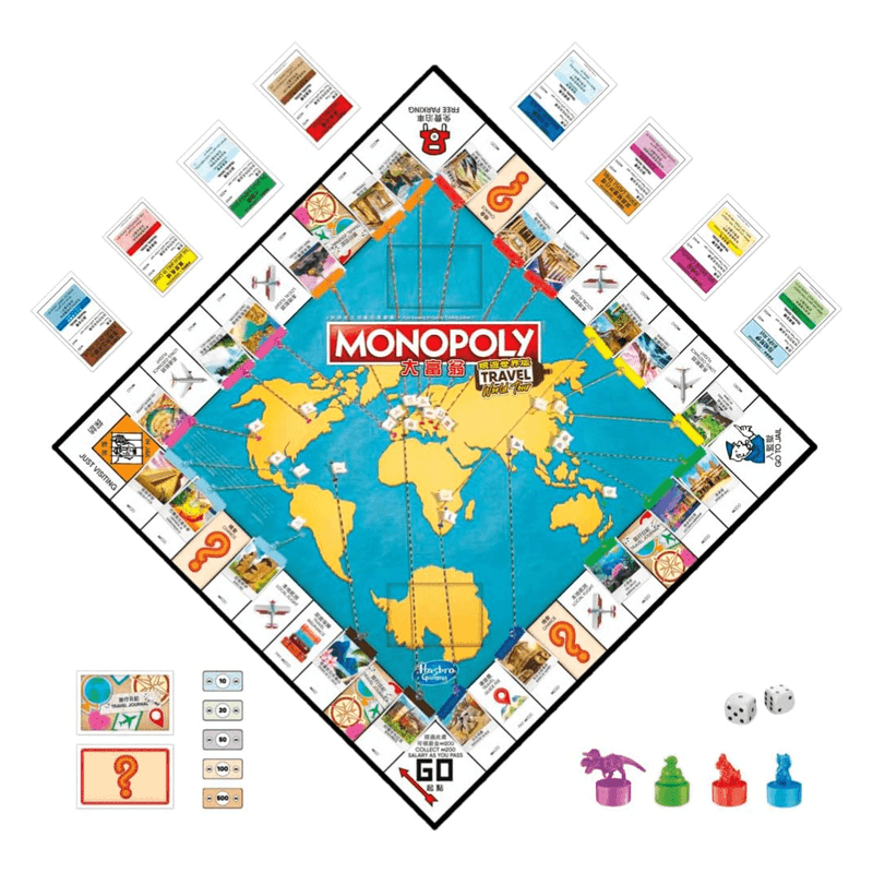 •PROPIEDADES DEL JUEGO MONOPOLY: En esta edición del juego Monopoly, las propiedades son los destinos. Las tarjetas de Destino incluyen objetivos de viaje y datos curiosos sobre cada destino