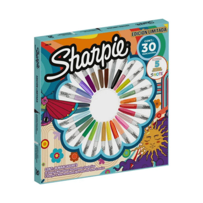 Marcadores Sharpie x30 Punta Fina – Edición LimitadaDale color a tus ideas con este exclusivo set de marcadores Sharpie edición limitada. Incluye 30 unidades con punta fina para trazos precisos y vibrantes. Ideal para dibujos, notas, proyectos creativos y mucho más.