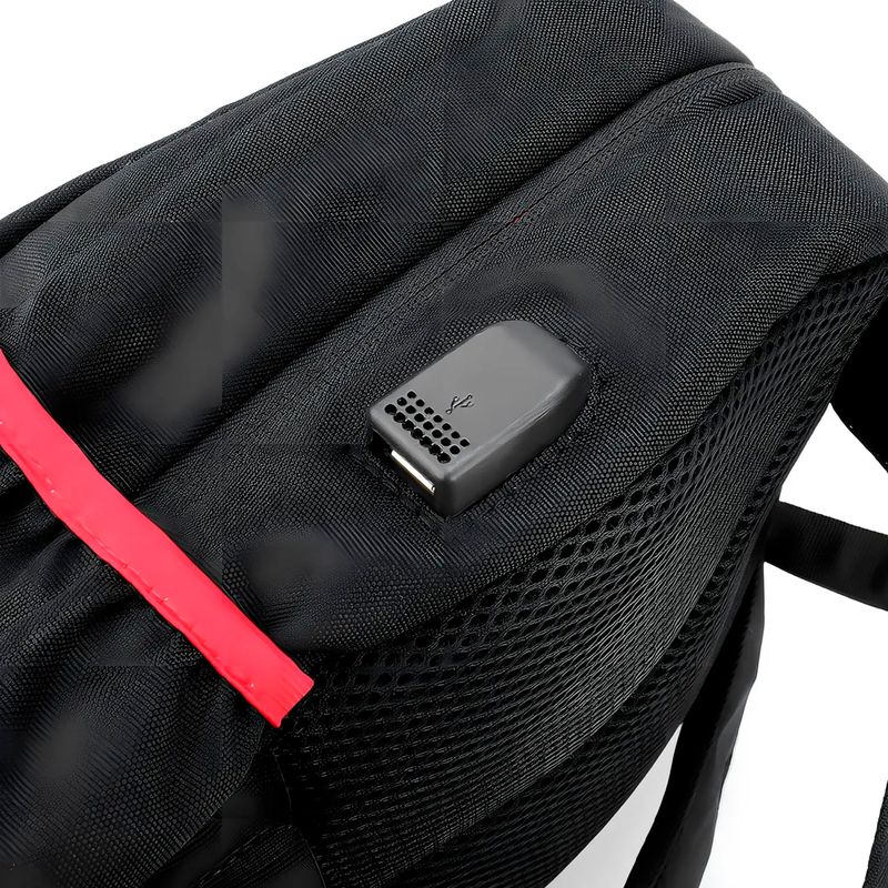 Incluye un puerto USB lateral para que puedas conectar tu power bank y cargar tu teléfono o dispositivo sin abrir la mochila. Ideal para trayectos largos o jornadas intensas fuera de casa.