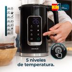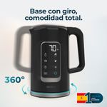 -Panel táctil con 5 niveles de temperatura: 40ºC (leche), 70ºC (té verde), 80ºC (té o mate), 90ºC (café), 100ºC (hervir).