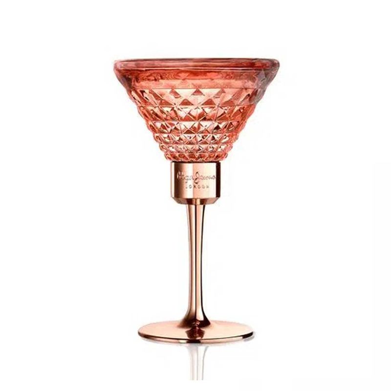 Un elixir de sensualidad. Es una fragancia para la piel. Una fusión de ámbar y vainilla potenciada por las deliciosas notas de la leche de almendra, el malvavisco y el almizcle. El acabado es suave, íntimo y totalmente adictivo. Esculpido con la forma de un vaso de Martini, el nuevo perfume para ella representa el deseo de disfrutar de la vida. La superficie del frasco, un cristal brillante y elegante de color rosa,está totalmente facetada en prismas. La sofisticación del diseño llegade la mano del tapón metálico también en rosa, que con estilo y delicadeza adorna el frasco de cristal. Otro toque de originalidad se aprecia en la posición invertida del perfume.