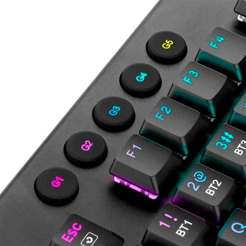 Como dijimos, con el HORUS lo tienes todo: acceso rápido a una amplia variedad de funciones multimedia dedicadas y teclas macro dedicadas que permiten moverte cómodamente. También posee funciones específicas para gaming, como el bloqueo de la tecla Windows, un detalle vital para evitar accidentes no deseados mientras juegas.