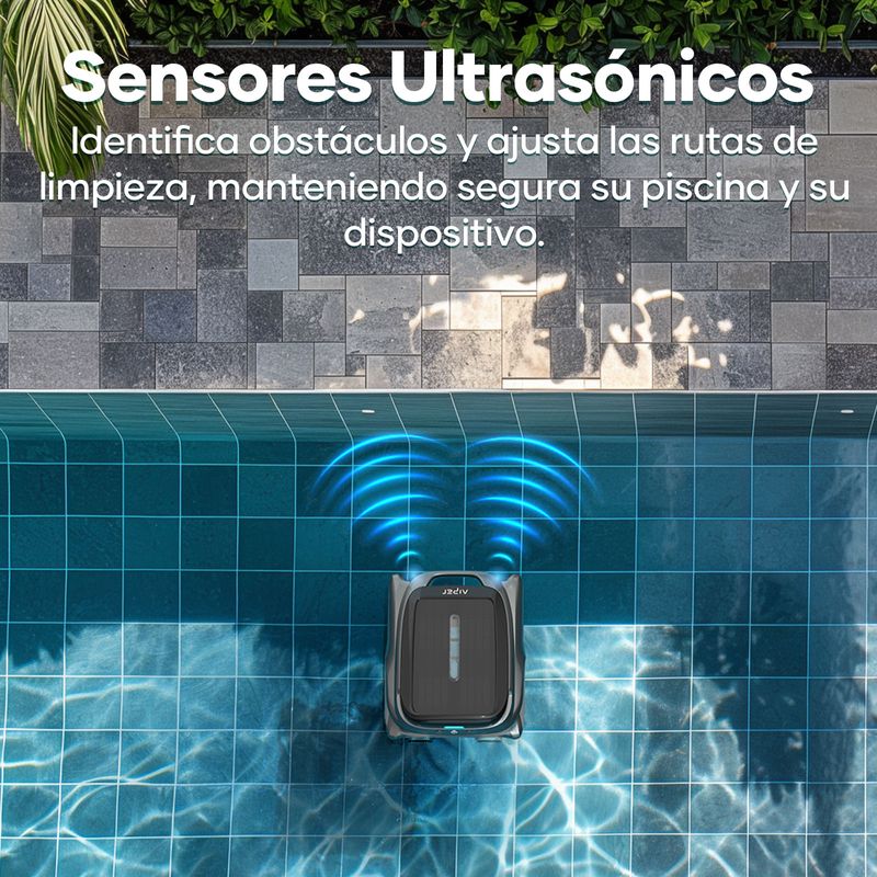 - Detección ultrasónica los detectores ultrasónicos reconocen y evitan las paredes de su piscina y ayudan en la navegación. Aumente la cobertura de limpieza y proporcione al mismo tiempo una limpieza segura de esquina a esquina de su piscina.