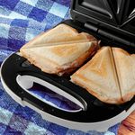 La sandwichera y waflera eléctrica 2 en 1 de Smartlife permite realizar variedad de preparaciones dulces o saladas cambiando facilmente su placa antiadherente a la indicada para la receta.