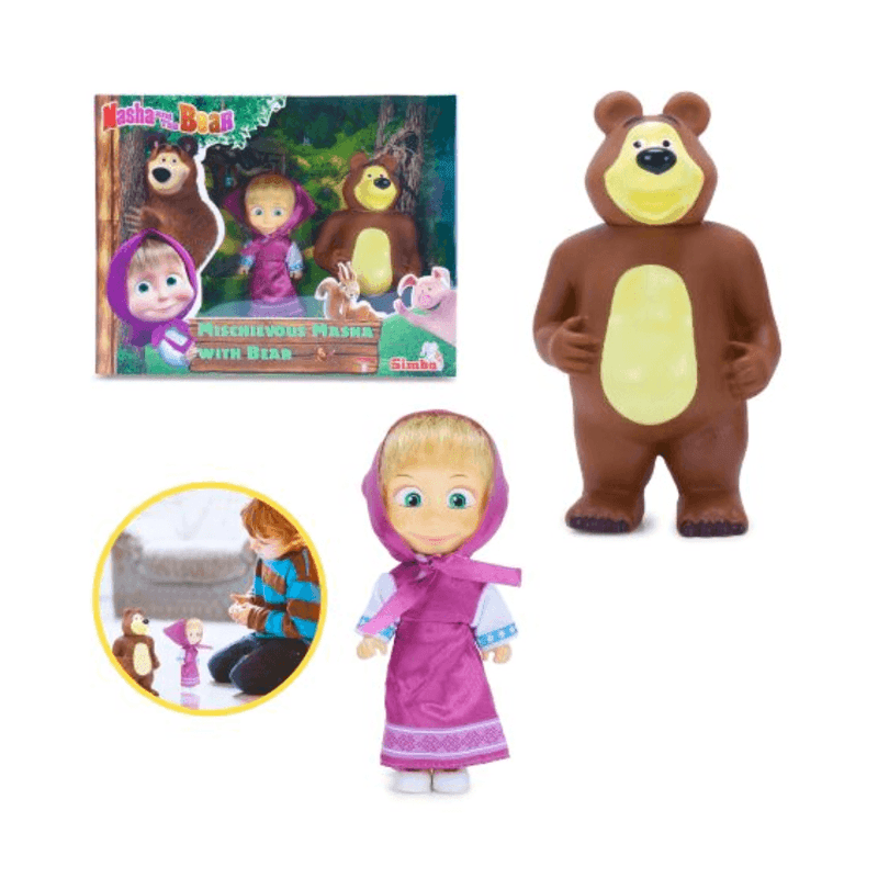 Este encantador set incluye a los protagonistas de la serie que conquistó a grandes y chicos: Masha y su inseparable amigo, el Oso.