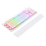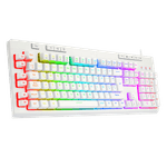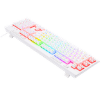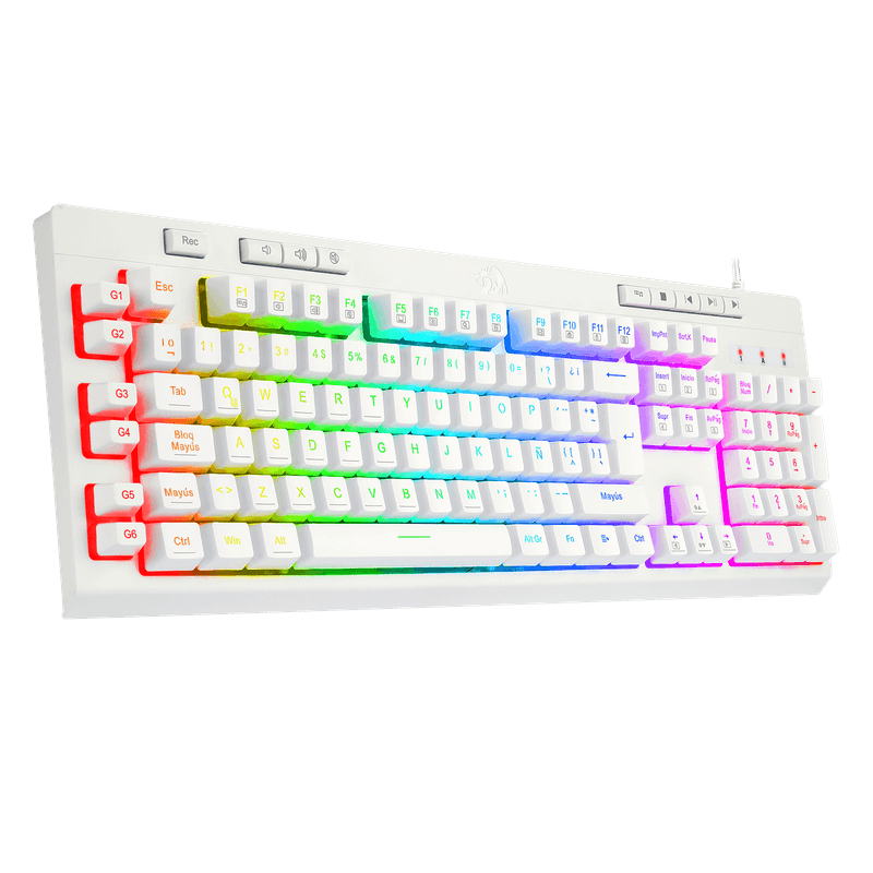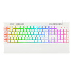 El Shiva K512-RGB es un teclado de membrana de tamaño completo, equipado con una amplia variedad de funciones para gaming: teclas macro y multimedia dedicadas, reposamuñecas magnético extraíble, retroiluminación RGB, matriz anti ghosting, cable mallado y más. Un teclado de membrana que se atreve a competir con los mecánicos. Esta es su versión en blanco.