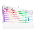 Este teclado en español tiene todo lo necesario: rueda de volumen, teclas multimedia dedicadas, USB Pass Through ubicado en la parte posterior del teclado, reposamuñecas desmontable y 12 teclas G completamente configurables.