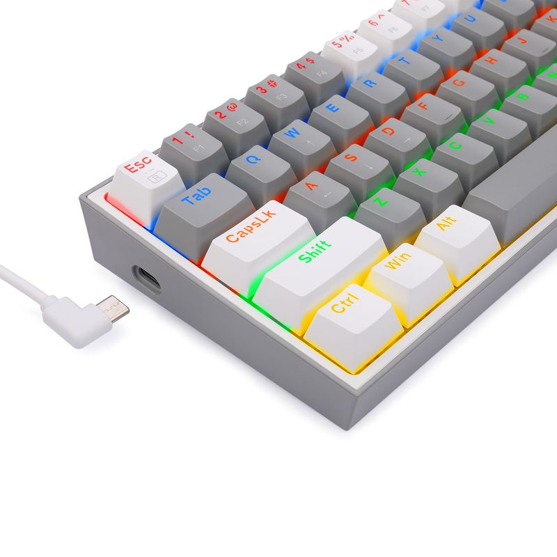 El Redragon Fizz RGB K617-RGB (Grey/White) es ideal para quienes buscan un teclado mecánico estético, compacto y funcional. Perfecto para gaming, escritorios reducidos o setups coloridos, y con la flexibilidad de personalización que ofrece la versión hot-swappable.