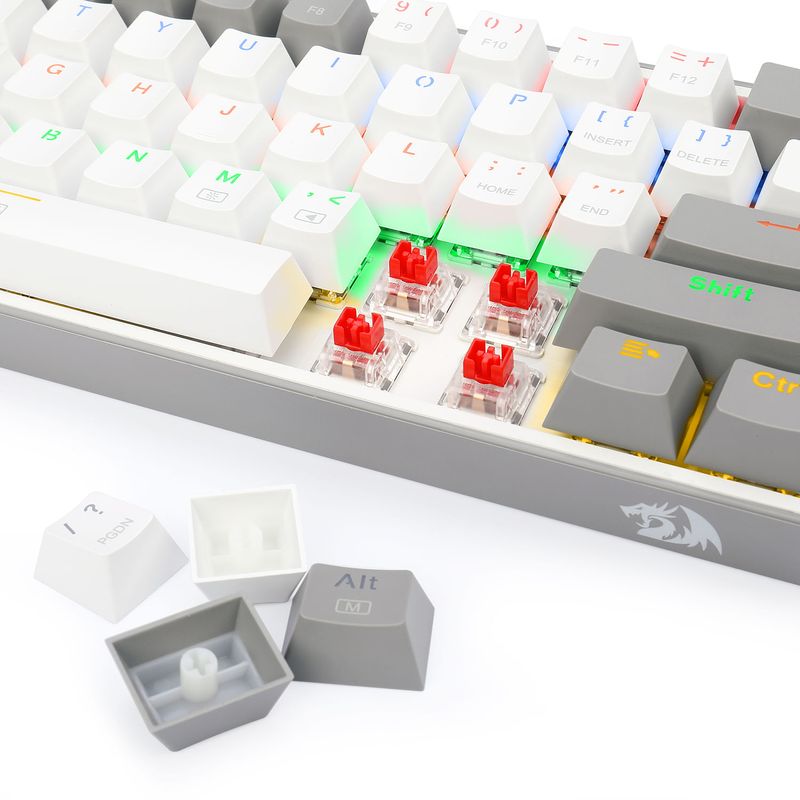El Redragon Fizz RGB K617-RGB (White/Grey) es ideal para quienes buscan un teclado mecánico estético, compacto y funcional. Perfecto para gaming, escritorios reducidos o setups coloridos, y con la flexibilidad de personalización que ofrece la versión hot-swappable.