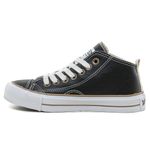 Zapatilla de media caña en cuero ecológico negro con bordado de logo retro.